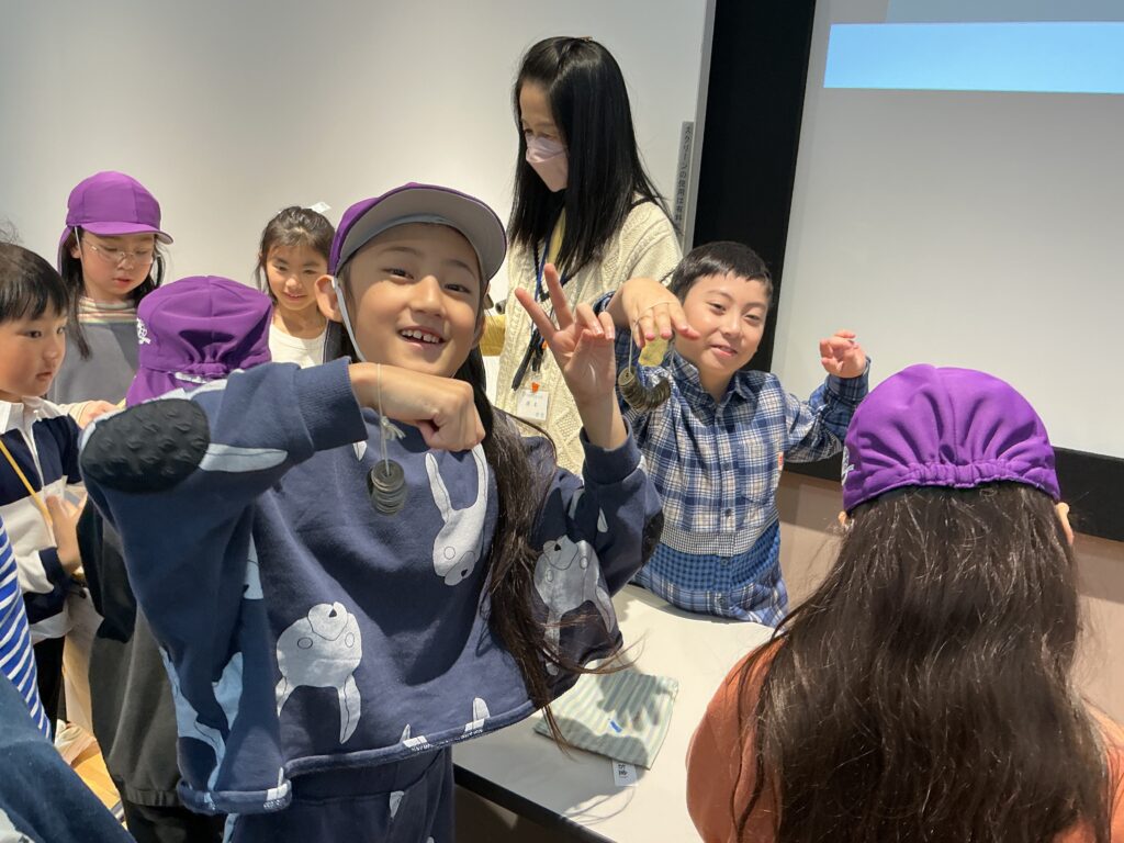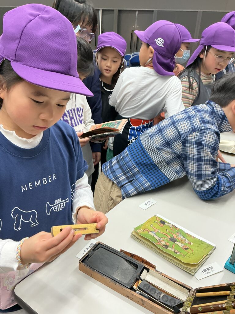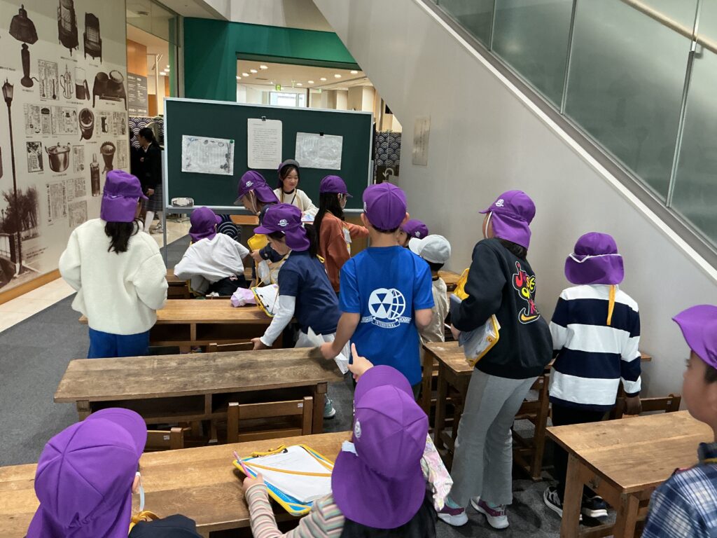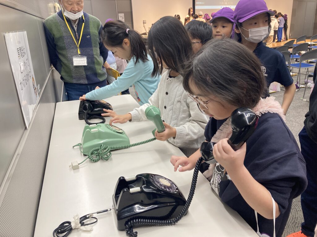午後は大阪くらしの今昔館を訪問し、昔の道具について学びを深めました。昔の黒電話や洗濯機、炊飯器、法被や下駄などが展示してあり、実際に触ったり使ってみたり、着たり履いたりしながら体験的に学ぶことができました。また、特別にご用意していただいた『蓄音機』。電気を使用していないのに音楽が流れてくることに子どもたちは感動していました。