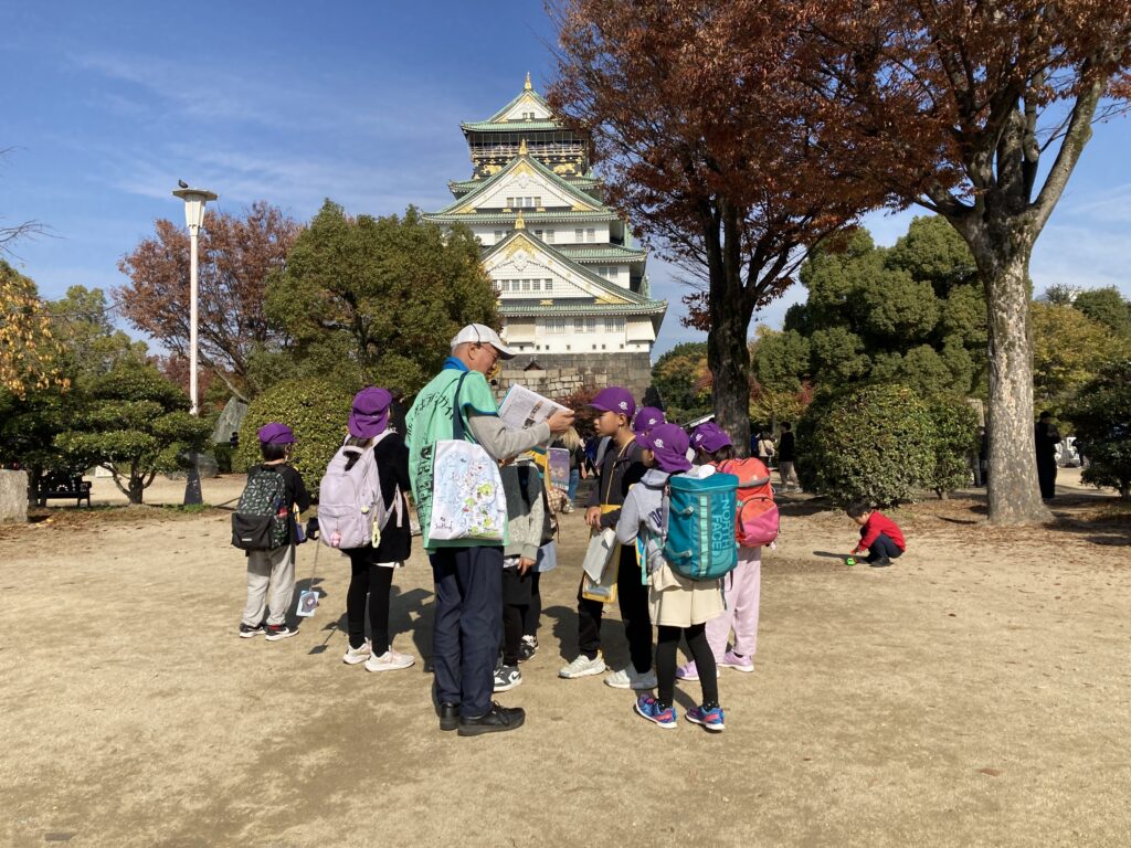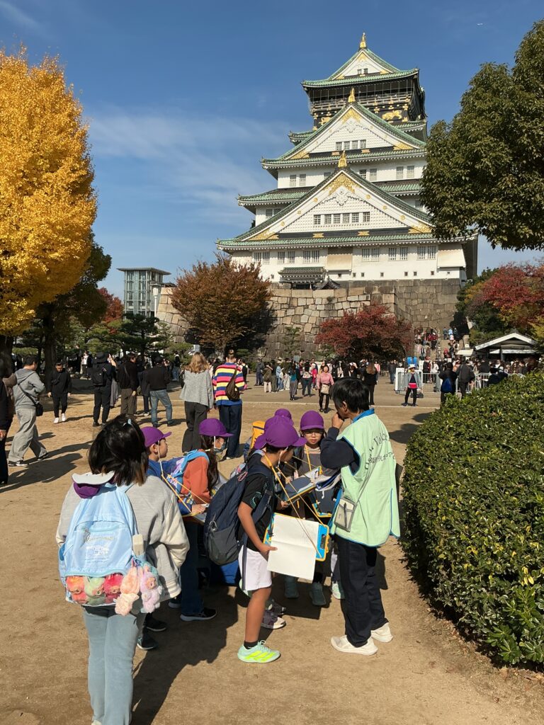 11月25日(火)からUnit 5が始まりました。Unit 5のセントラルアイデアは『道具に注目して考えることで、人々の歴史を理解することができる。』です。11月27日(木)の午前中には、大阪城の歴史についてボランティアガイドの皆様に案内してもらいながら散策しました。紅葉のベストシーズンでお天気は快晴。歩き疲れたようですが、お昼ご飯まで一生懸命頑張りました。