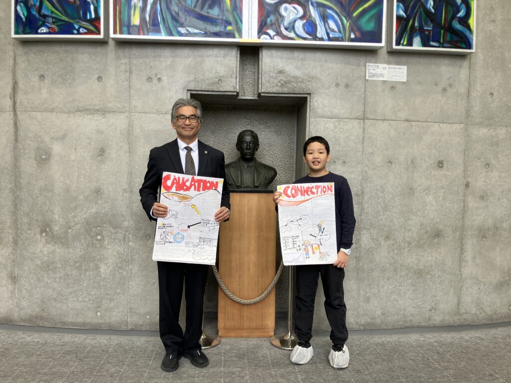 新島襄ゆかりの土地、群馬県安中市にある新島学園中学校・高等学校へ。新島学園は新島襄の教理念を安中市で実現するために新島襄に洗礼を受けた湯浅治郎の孫・湯浅正次によって創立されました。新島学園のみなさんには、歓迎会を開いていただき、一緒に讃美歌を歌ったり、合唱やハンドベル演奏などを見せていただきました。大変美しい声や音色に子どもたちも聞き入っていました。お礼として、5年生の子どもたちも校歌・College songを歌い、スポーツデイでも披露したハカを発表させていただきました。また、有志の児童が探究の発表をさせていただき新島学園の皆様に大変喜んでいただきました。