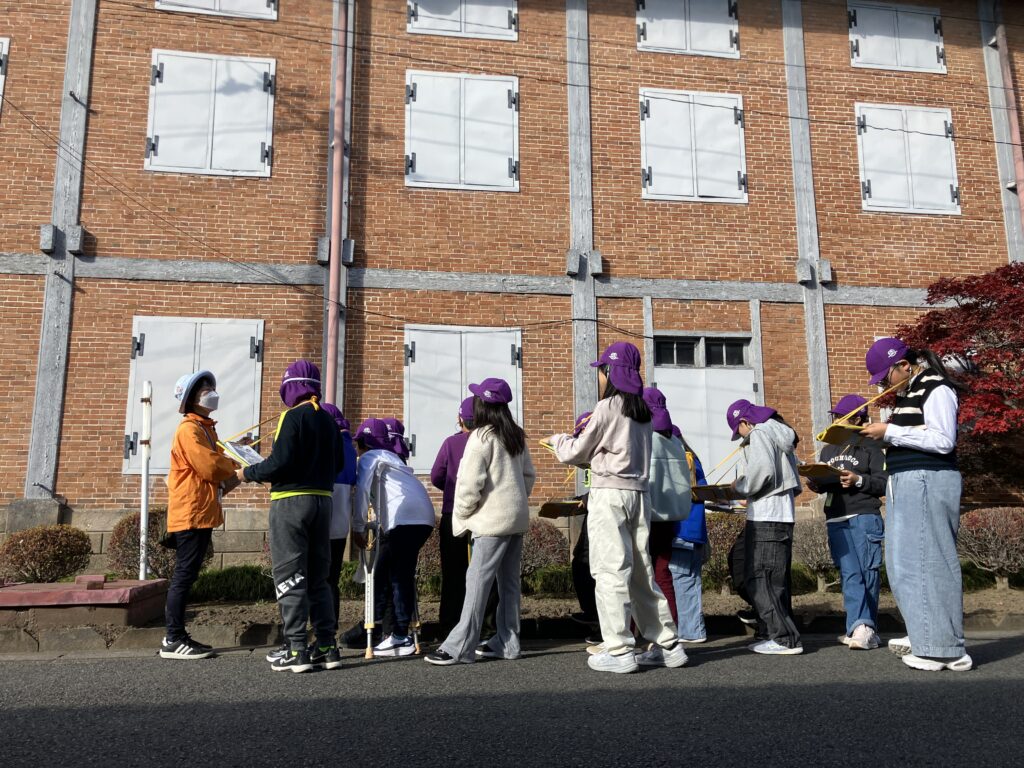 富岡製糸場ではガイドの方のお話を真剣に聞いていました。生糸が各家庭で作られていただ江戸時代から、より安定した製品を一度にたくさん作るために生糸を作る機械をフランスから導入し発展を遂げた富岡製糸場に見入っていまいした。建物と現在とは全く異なる様子に不思議そうに眺めていました。ガイドの方に「死んでしまった蚕はどうなるのですか?」など質問もたくさんしていました。